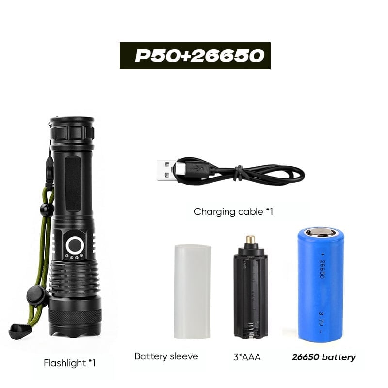 - High-Intensity P50/P70/P90 LED: Equipped with a high-powered P50/P70/P90 LED chip, this flashlight delivers an impressive brightness of up to 1500/2000/3000 lumens, ensuring long-lasting, high-intensity illumination. (Real data, no false information!)
