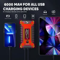 【Car Battery Jump Starter】: The battery capacity is 6000mAh, which can start 12V 3.0 displacement cars and below, basically 5 to 10 times.