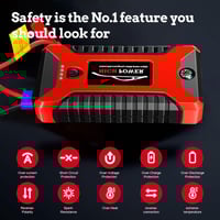 【10 Intelligent Secure Protection & Stable Operation】: Our car jump starter have 10 protection systems (reverse polarity, reverse charge, over discharge, reverse connection, short circuit, over charge, over current, over heat, spark resistance). High Power jump pack for car battery ensure your safety during using and the jump pack can work in -22°F ~ 140°F, even in any extreme weather.